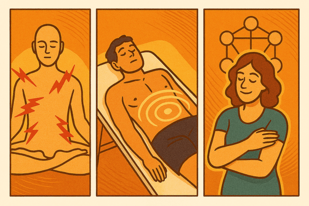 When we are disconnected from our bodies, blocked energy manifests as pain, muscle tension, psychosomatic reactions, etc. The body needs to rebalance itself to survive and, if we don’t assist, it seeks its own homeostatic mechanisms.