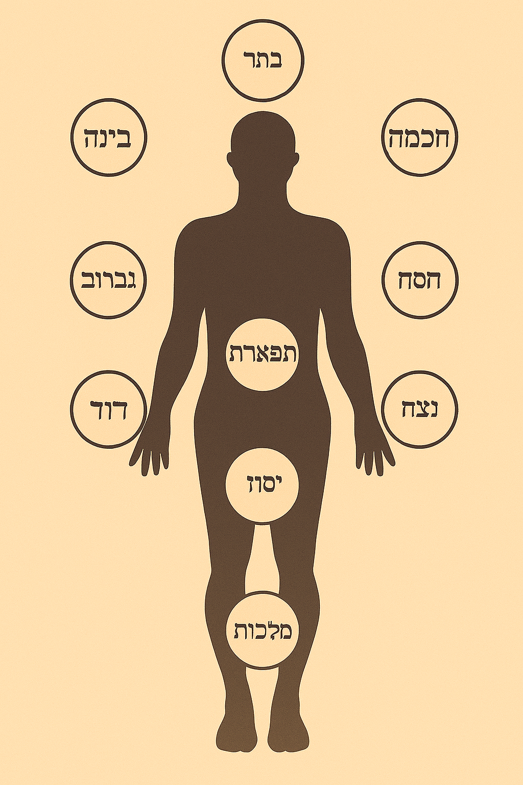 Diagram: The 7 Chakras and Their Qualities vs. The Location of the 10 Kabbalistic Spheres